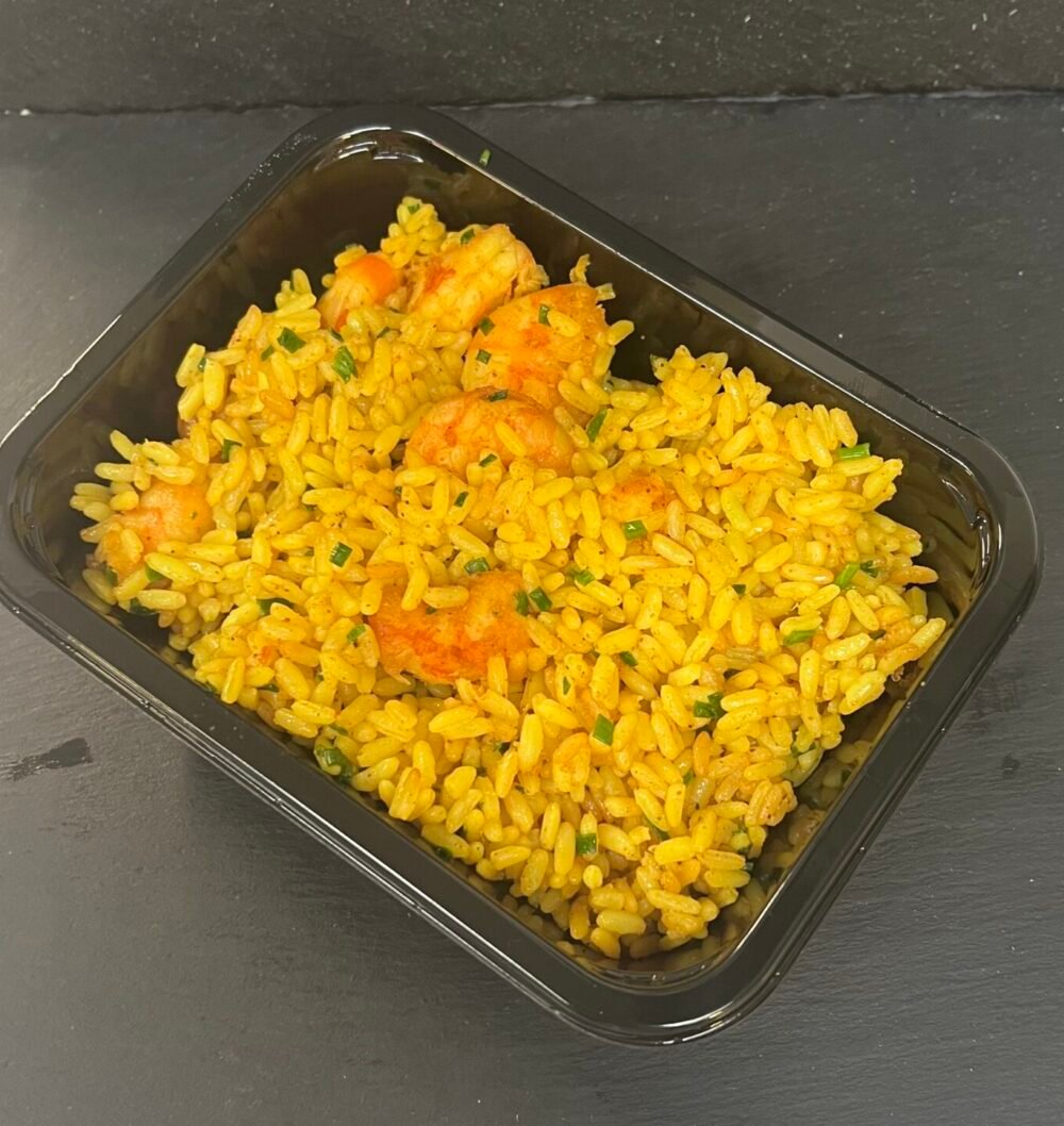 Riz de base de curry et crevettes.